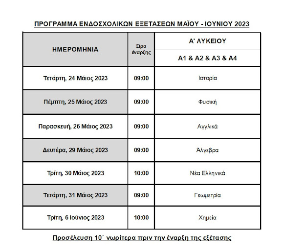 Από το Υπουργείο Παιδείας και Θρησκευμάτων, σας υπενθυμίζουμε ότι η υγειονομική εξέταση και πρακτική δοκιμασία (Αγωνίσματα) των υποψηφίων για τα Τ.Ε.Φ.Α.Α., θα διεξαχθούν από την Τετάρτη 14 Ιουνίου 2023 μέχρι και την Τρίτη 27 Ιουνίου 2023.